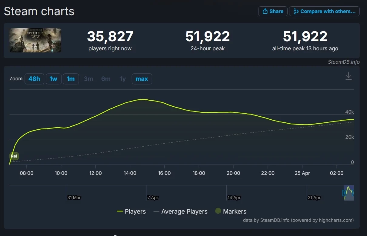 Clair Obscur: Expedition 33 привлекла в Steam более 50 тыс игроков одновременно