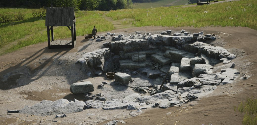Особое внимание в будущем Manor Lords будет уделяться каменному строительству. Для постоянной добычи ресурса появится карьер, а для создания материалов — печь для обжига извести.