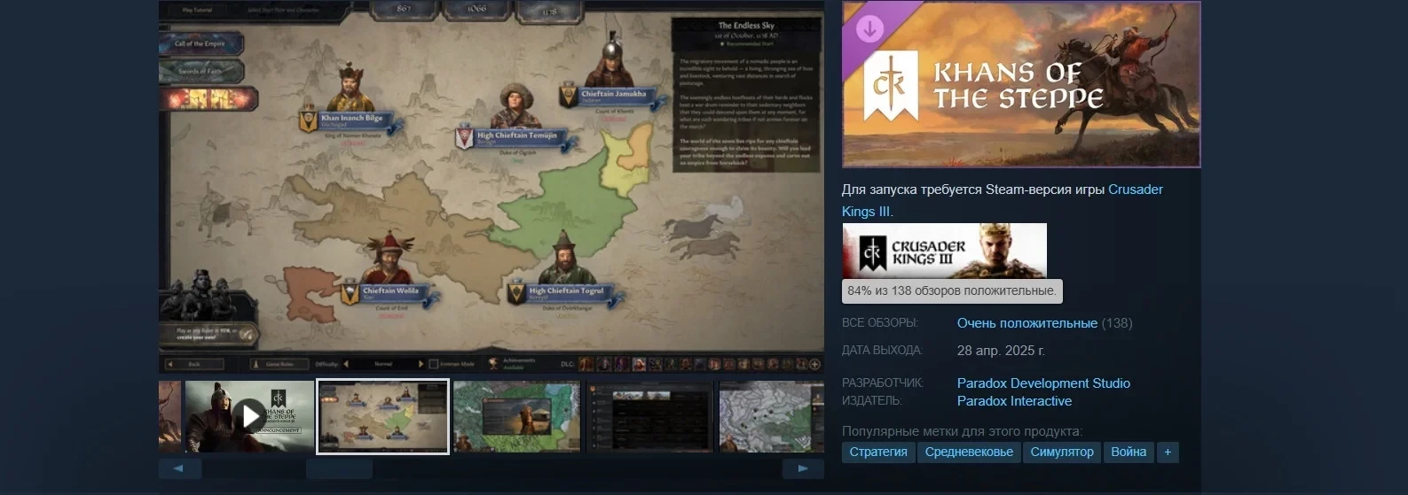 Главная » Статьи » Расширение Khans of the Steppe для Crusader Kings 3 очень хорошо встретили в Steam