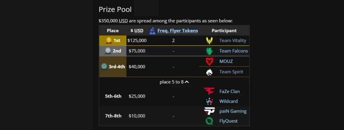 Теперь Team Vitality станет богаче на $175 тысяч, тогда как Falcons получит $75 тысяч. Team Spirit и MOUZ, которые делят 3-4 места, выиграли по $40 тысяч.