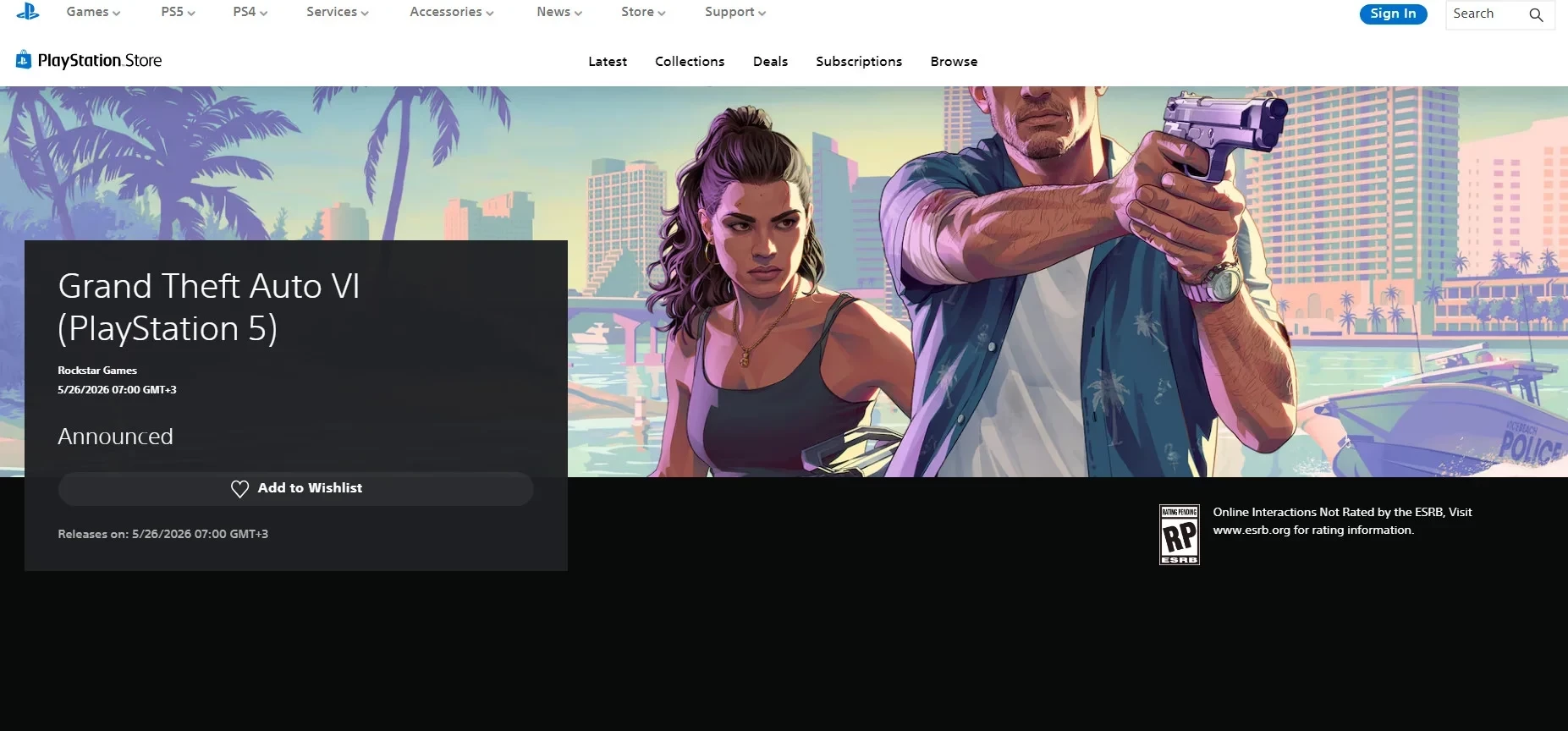 У GTA 6 появилась страница в магазине PlayStation — намёк на скорое открытие предзаказов?