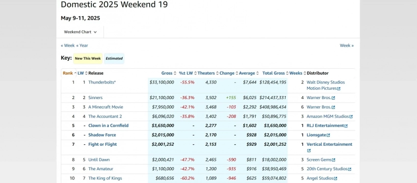 Свежий топ-5 кассовых сборов в прокате в США за период с 9 по 11 мая 2025 года: