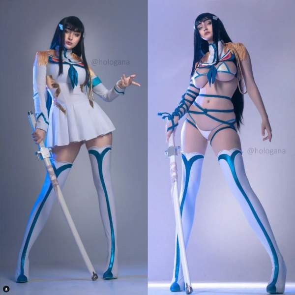 Довольно откровенный образ Кирюин Сацуки из аниме Kill la Kill от Hologana, но тем не менее отличный и довольно качественный. В шоу девушка тоже часто фигурировала в не менее откровенном костюме, поэтому канон соблюден.