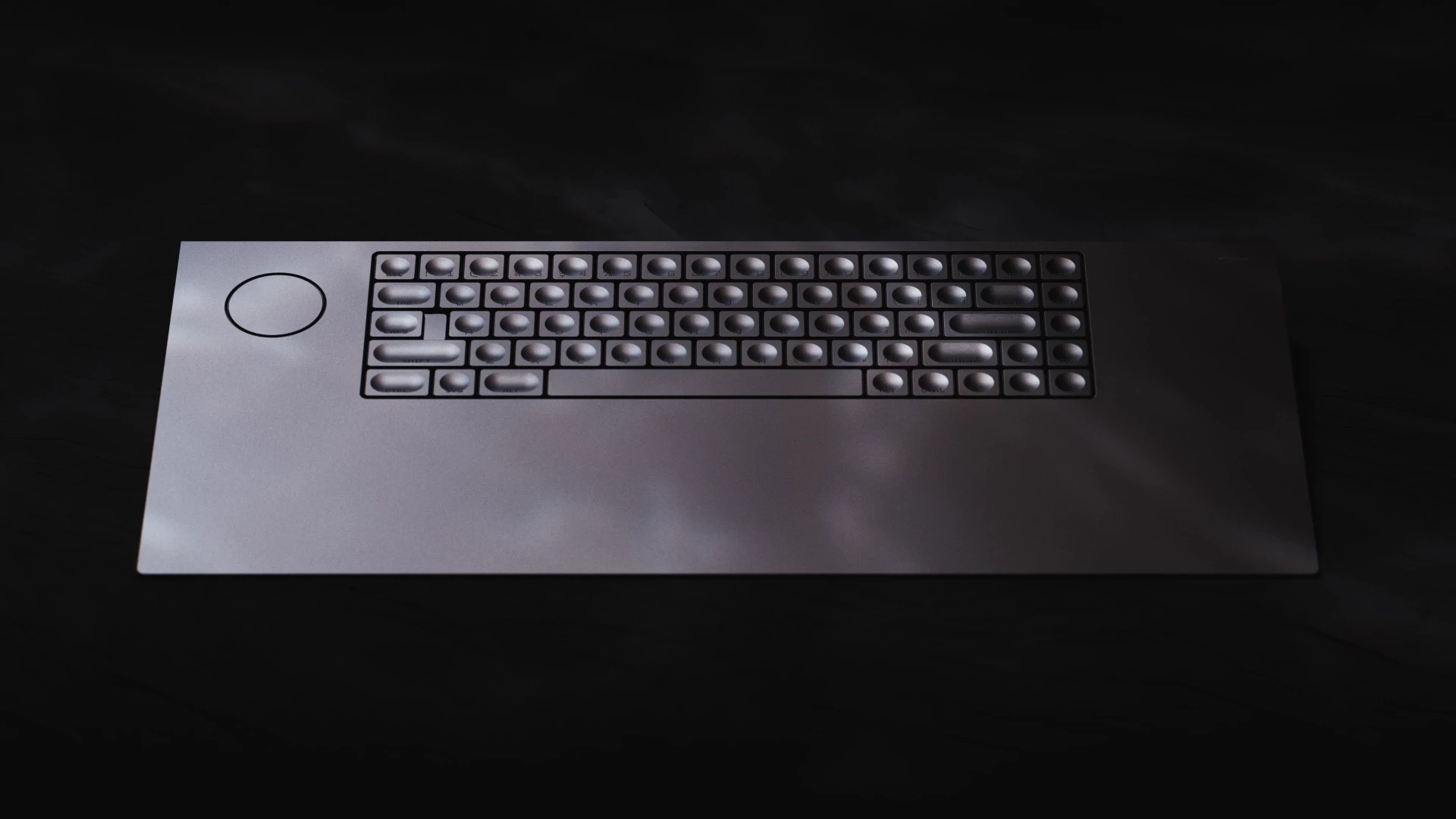 Как и сам корпус, клавиши также выполнены из алюминия с явными углублениями. Шрифт нанесён сквозной гравировкой и подсвечивается. Вокруг клавиш пробивается светодиодная подсветка. Слева от колпачков размещается энкодер, который поможет изменить громкость аудиосистемы или переместиться в документе в зависимости от настроек. На нижней части корпуса установлены силиконовые демпферы для уменьшения скольжения по столу и снижение уровня шума во время набора текста.