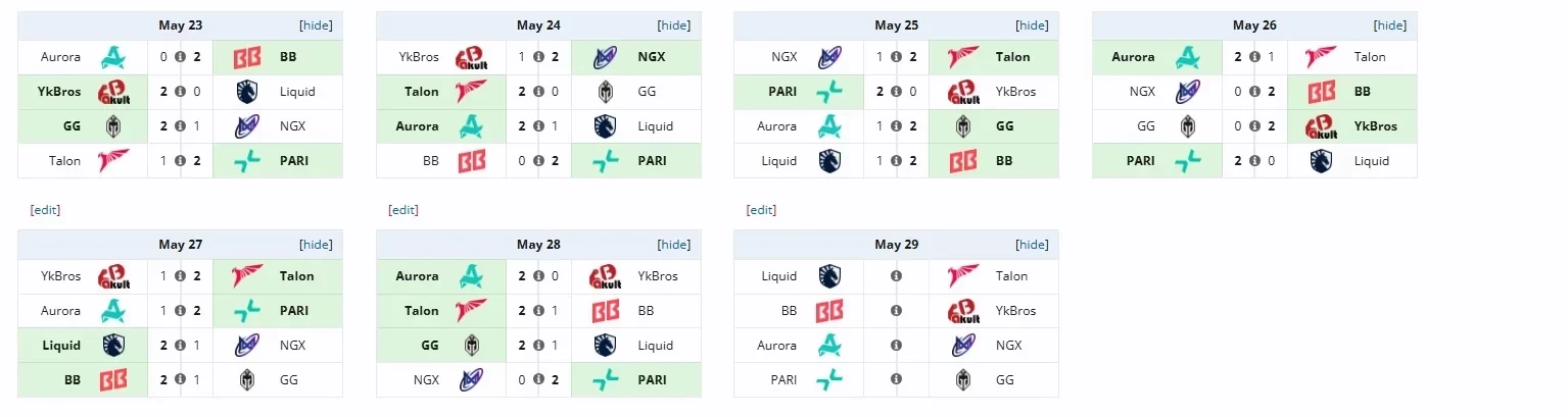 • Aurora Gaming против Nigma Galaxy;