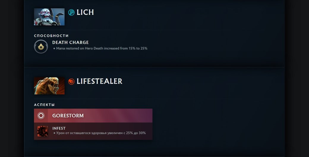 • Broodmother: аспекты Necrotic Webs, Spin Web — паутина уменьшает врагам не только восстановление, но и пополнение здоровья (в том же объёме);