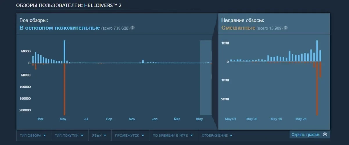 График отзывов Helldivers 2