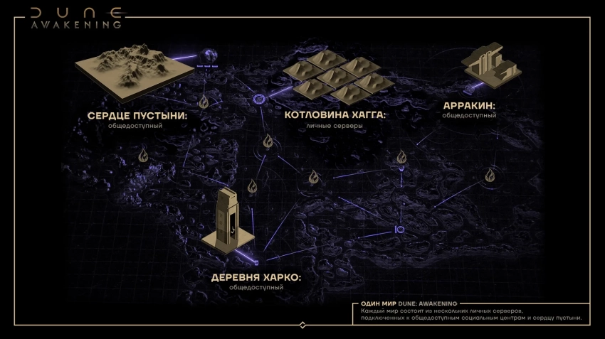 Напомним, что в Dune: Awakening используется уникальная система миров и серверов, где последние связаны с общими социальными центрами и сердцем пустыни (последние арендовать нельзя).