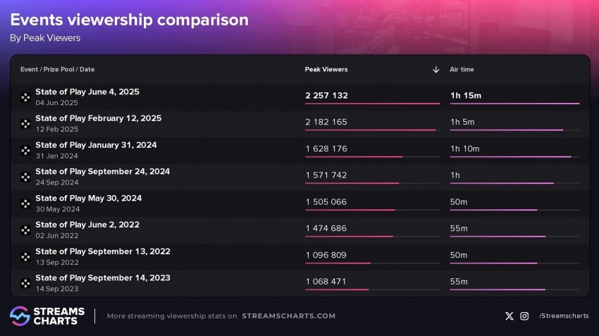 По данным Streams Charts, на пике количество зрителей прямой трансляции превысило 2,25 млн. Предыдущий рекорд принадлежал State of Play за февраль 2025 года. Тогда на пике за мероприятием одновременно следили 2,18 млн зрителей.