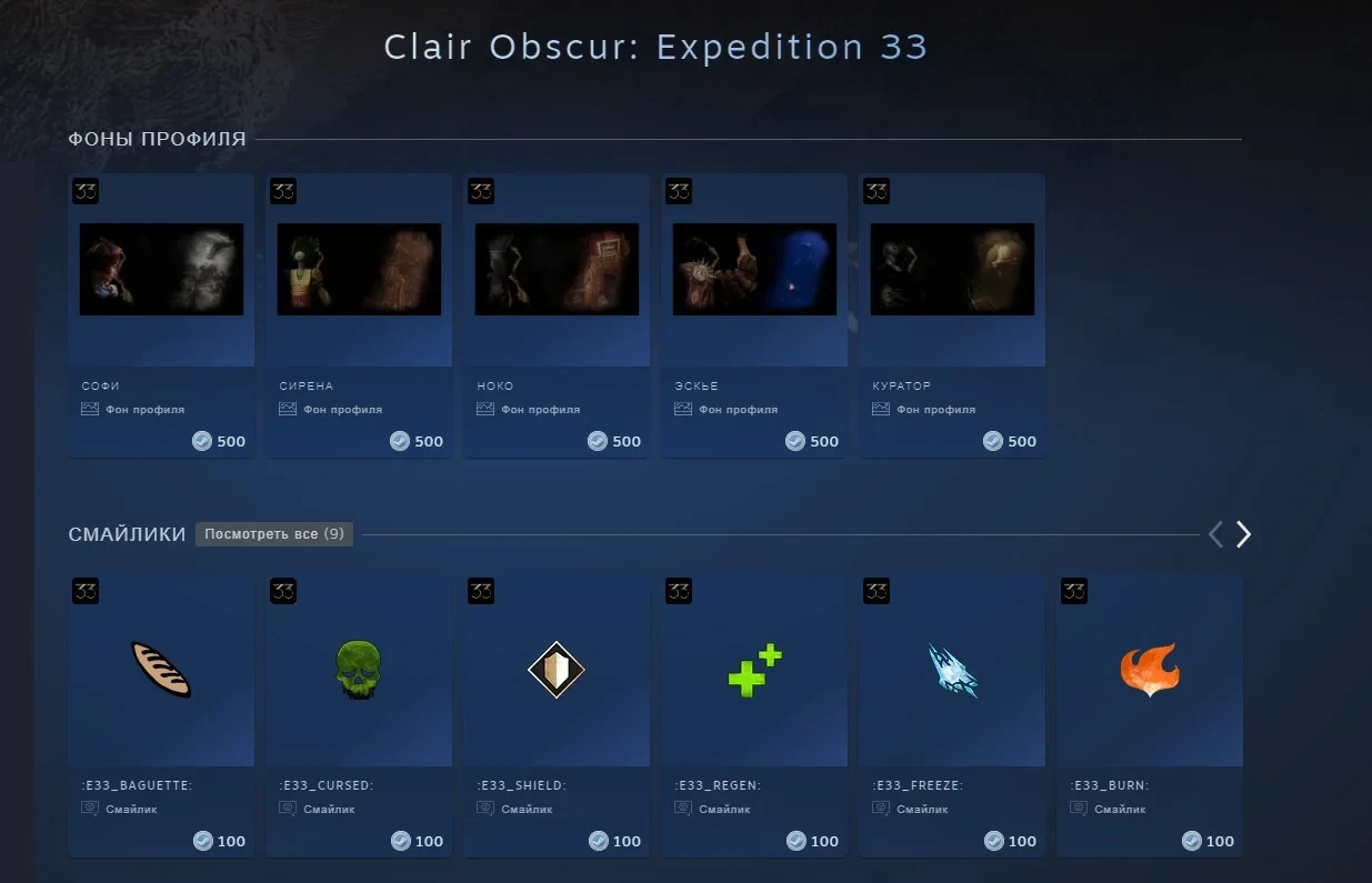 А ещё обновление привнесло с собой тематические предметы Clair Obscur: Expedition 33 в магазин очков Steam. На выбор представлено пять фонов профиля с ключевыми персонажами ролевой игры и девять смайликов. Поклонники также смогут получить карточки за нахождение в игре, чтобы использовать их для продажи на торговой площадке или крафта значка профиля.