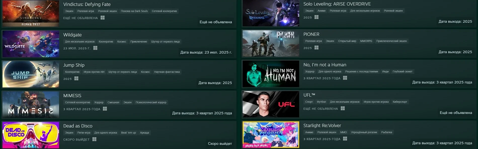 Сразу скажем, что российский MMO-шутер Pioner вошёл в топ-10. Уже 300 тыс человек добавили его в список желаемого в Steam. Демоверсия доступна до 21 июня.