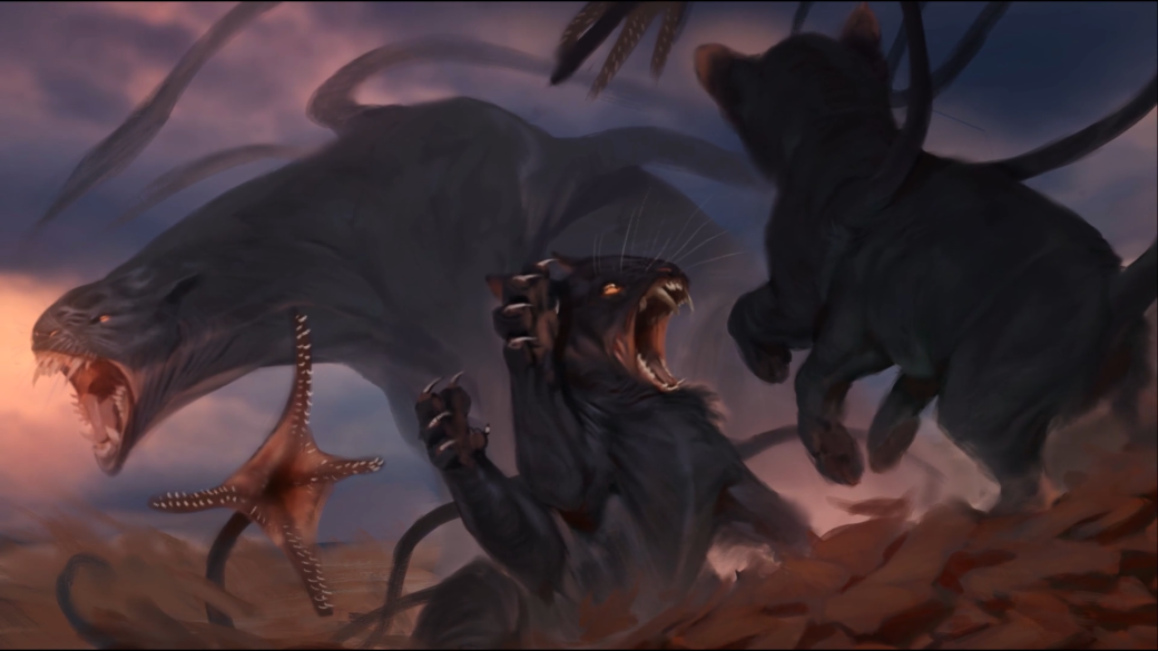 На артах можно увидеть атмосферное окружение, эпичных монстров и различных персонажей, включая крылатого кота (Трессим в D& D) и потенциальных компаньонов.
