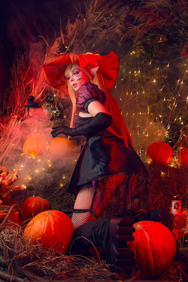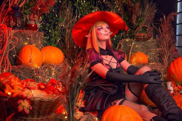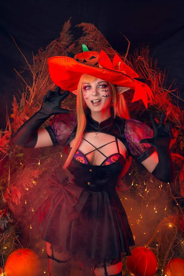 Марин из аниме My Dress-Up Darling стала в последнее время очень популярна у косплееров. Причина довольно проста — яркая девушка, косплей который не очень сложно сделать. Но вот над этим хэллоуниским образом Алена Сысуева очень постаралась.