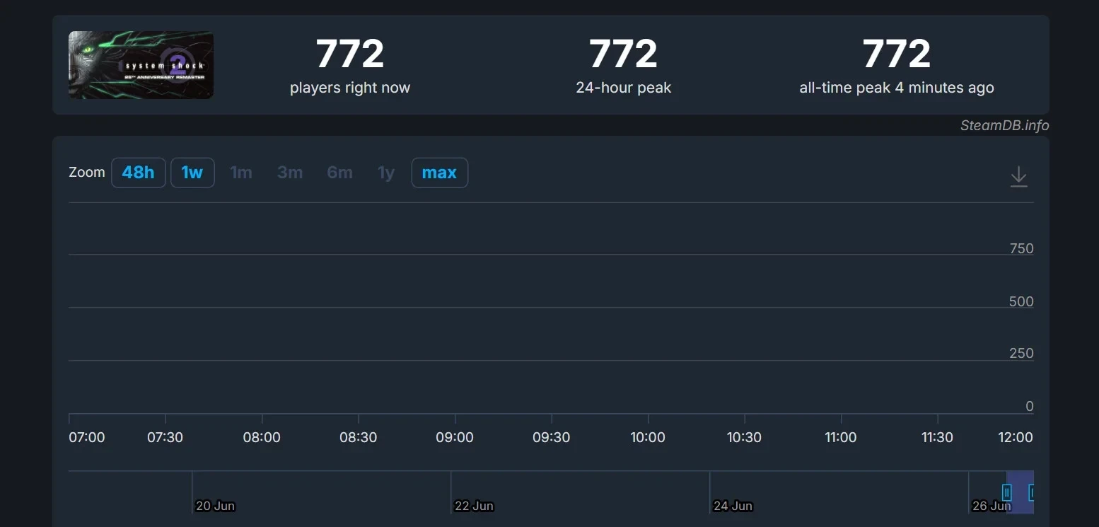 Что касается первых успехов в Steam, то пользовательская оценка ещё не сформирована. Пиковый онлайн в момент написания новости составил 772 человека, но наверняка заметно вырастит в ближайшие часы или на грядущих выходных.