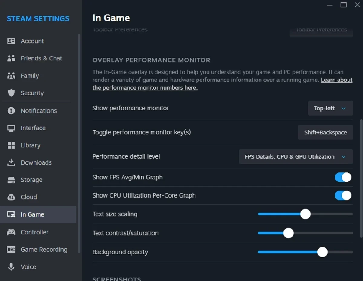 Новый раздел «Монитор производительности в оверлее» находится в «Настройках»/«В игре».