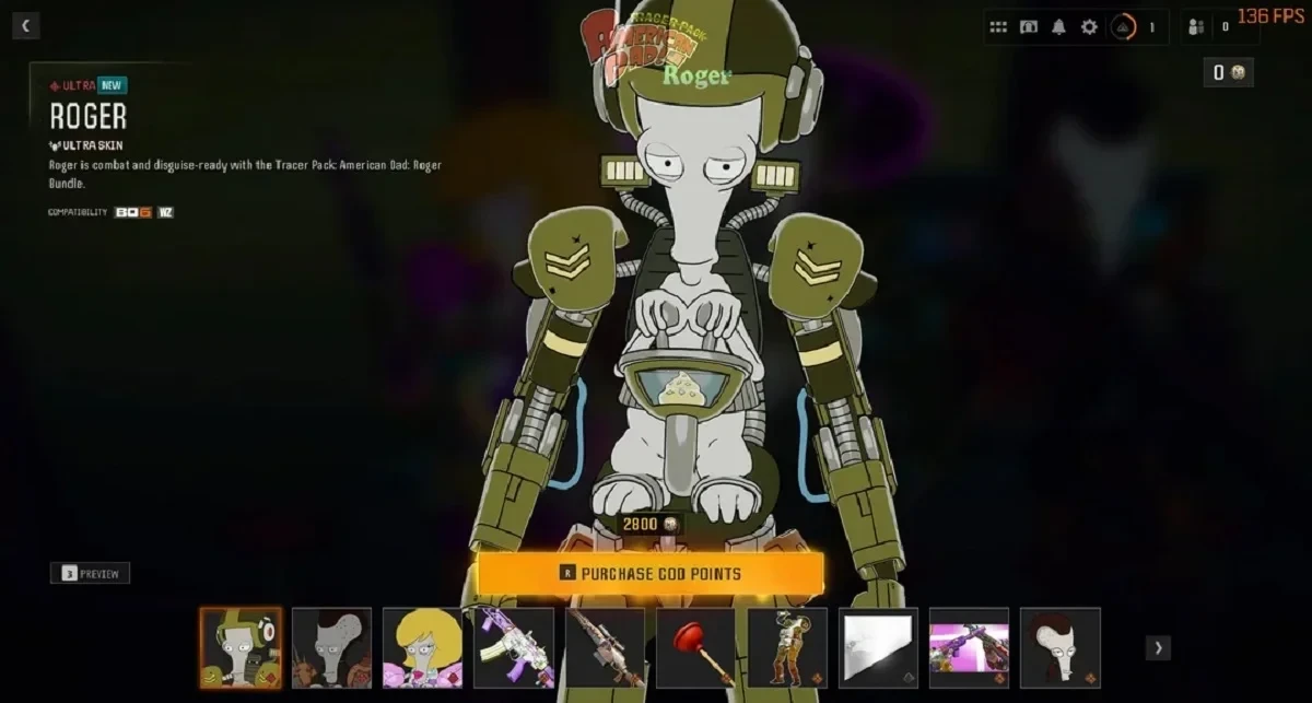 Набор с Роджером будет включать три разных облика и два чертежа оружия. Он обойдётся в 2800 очков CoD или также около 20 долларов.