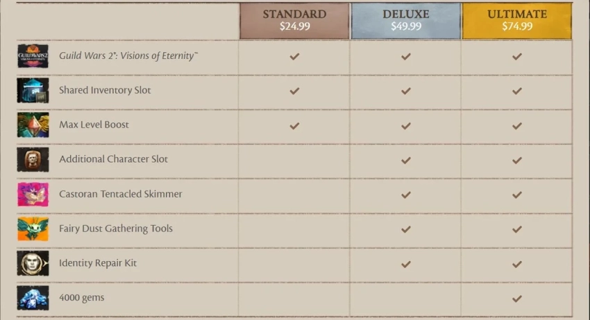 На момент запуска Visions of Eternity в игре откроются две новые карты на острове Кастора, ранее неизведанной части Тирии. Игроки получат новые возможности развития персонажей: для каждой из профессий готовят новую элитную специализацию.