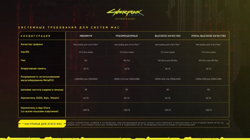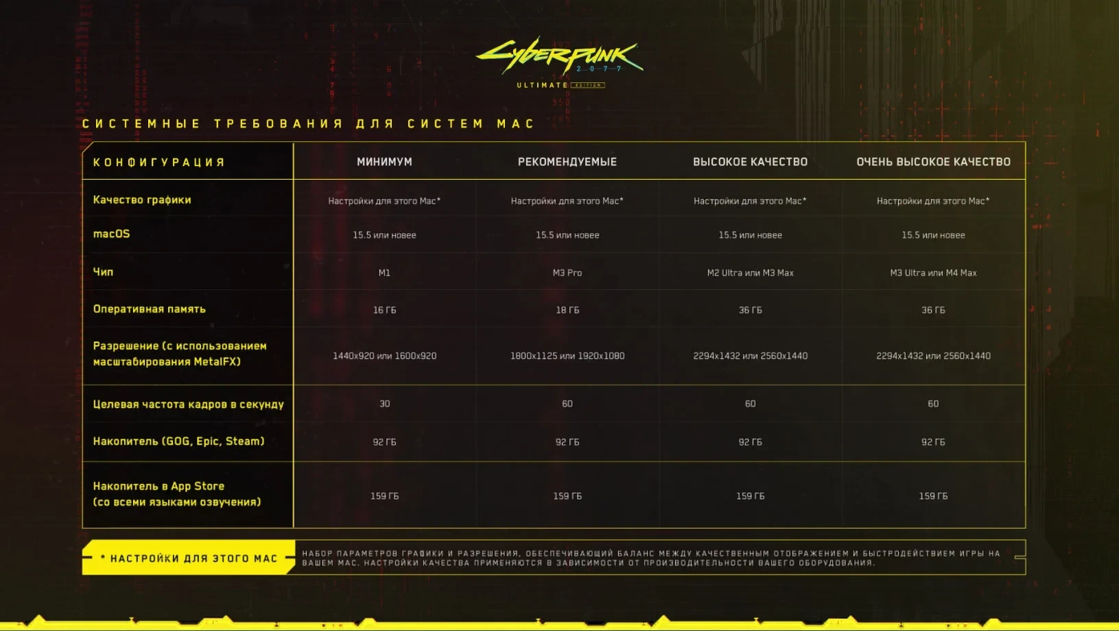 Напомним, что 17 июля Cyberpunk 2077 также доберётся до устройств Apple Mac. Разработчики из CD Projekt RED успели поделиться системными требованиями игры.