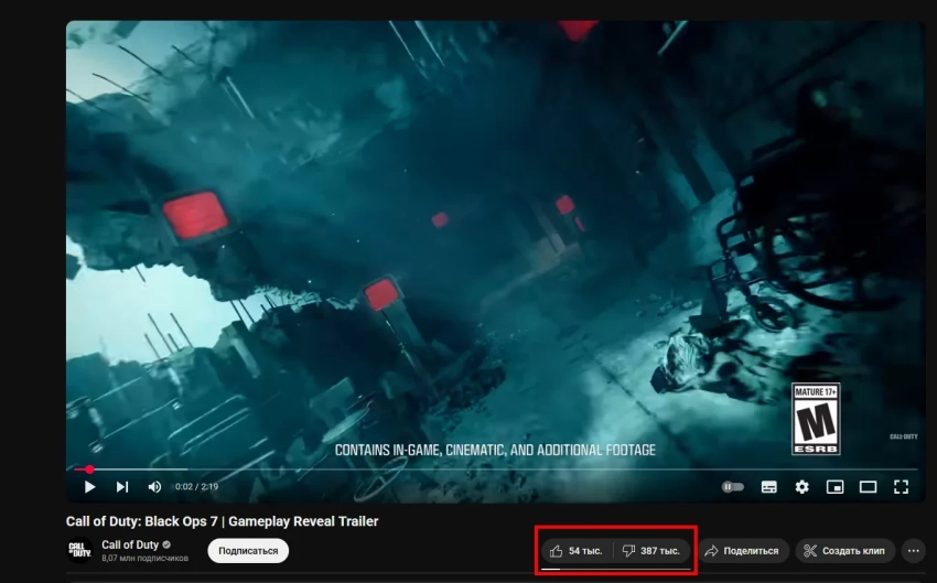 Трейлер Call of Duty: Black Ops 7 собрал почти 400 тыс дизлайков из-за хайпа Battlefield 6