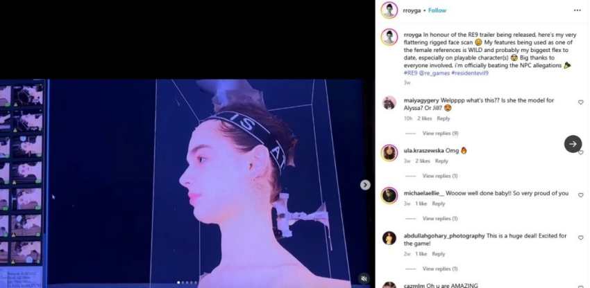 А в прошлом месяце британская модель Роя Афина (Roya Athina) поделилась информацией о том, что её внешность отсканировали для «играбельного женского персонажа/ей» Resident Evil Requiem.