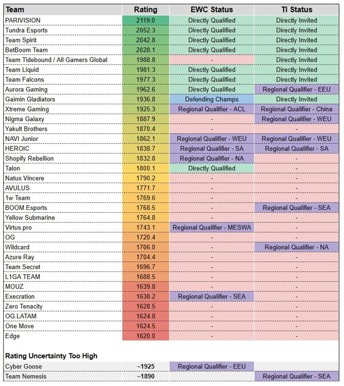 По спортивным основаниям Yakutou Brothers оказались первыми в очереди: среди не приглашённых коллективов они лидировали в рейтинге Glicko 2. Это совпало с «окном» для замены — и слот ушёл именно им.