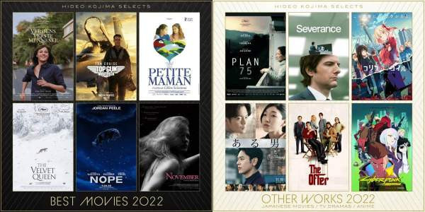 Японский геймдизайнер Хидео Кодзима опубликовал в своем твиттере список фильмов, сериалов и аниме, которые он посмотрел в 2022 году. О своем топе разработчик хотел рассказать в своем подкасте Brain Structure в начале года, но не смог уместить списки их в первый сезон.