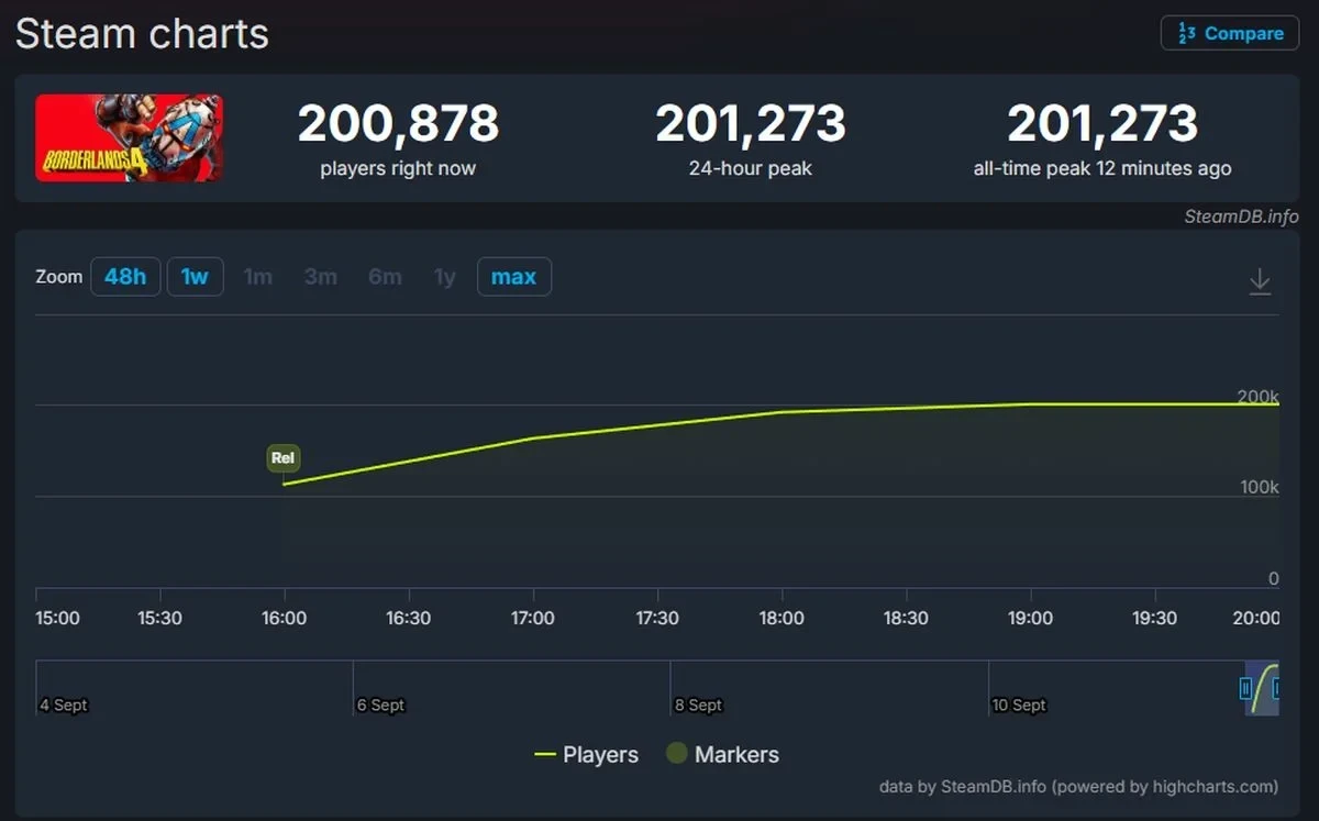Borderlands 4 побила рекорды прочих частей по пиковому онлайну в Steam